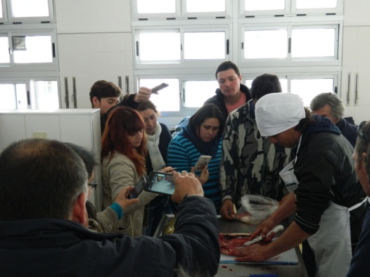El la instancia de taller se brindó una introducción teórica sobre la manipulación de pescado, continuando inmediatamente con demostraciones sobre fileteado y despinado de diversas especies (bagre, sábalo, boga y tararira), luego fueron compartidas las experiencias en la manipulación de pulpas para la elaboración de hamburguesas. En esta ocasión se hizo mucho hincapié en la calidad de la materia prima, la higiene personal y limpieza de equipamiento, y fundamentalmente la conservación de la cadena de frio del pescado (la materia prima utilizada en el taller fue suministrada por los pescadores de Paysandú).