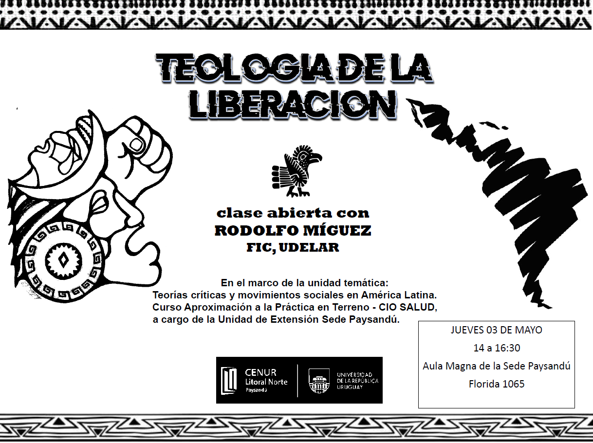 La Unidad de Extensión de la sede Paysandú del Centro Universitario Regional (CENUR) Litoral Norte, invita a la comunidad universitaria toda y al público en general a participar de la clase abierta: “Teología de la Liberación”, la misma estará a cargo del docente Rodolfo Míguez , de la Facultad de Información y Comunicación (FIC), el próximo jueves 3 de mayo, en el horario de 14 a 16.30 horas en el aula magna de la sede universitaria.