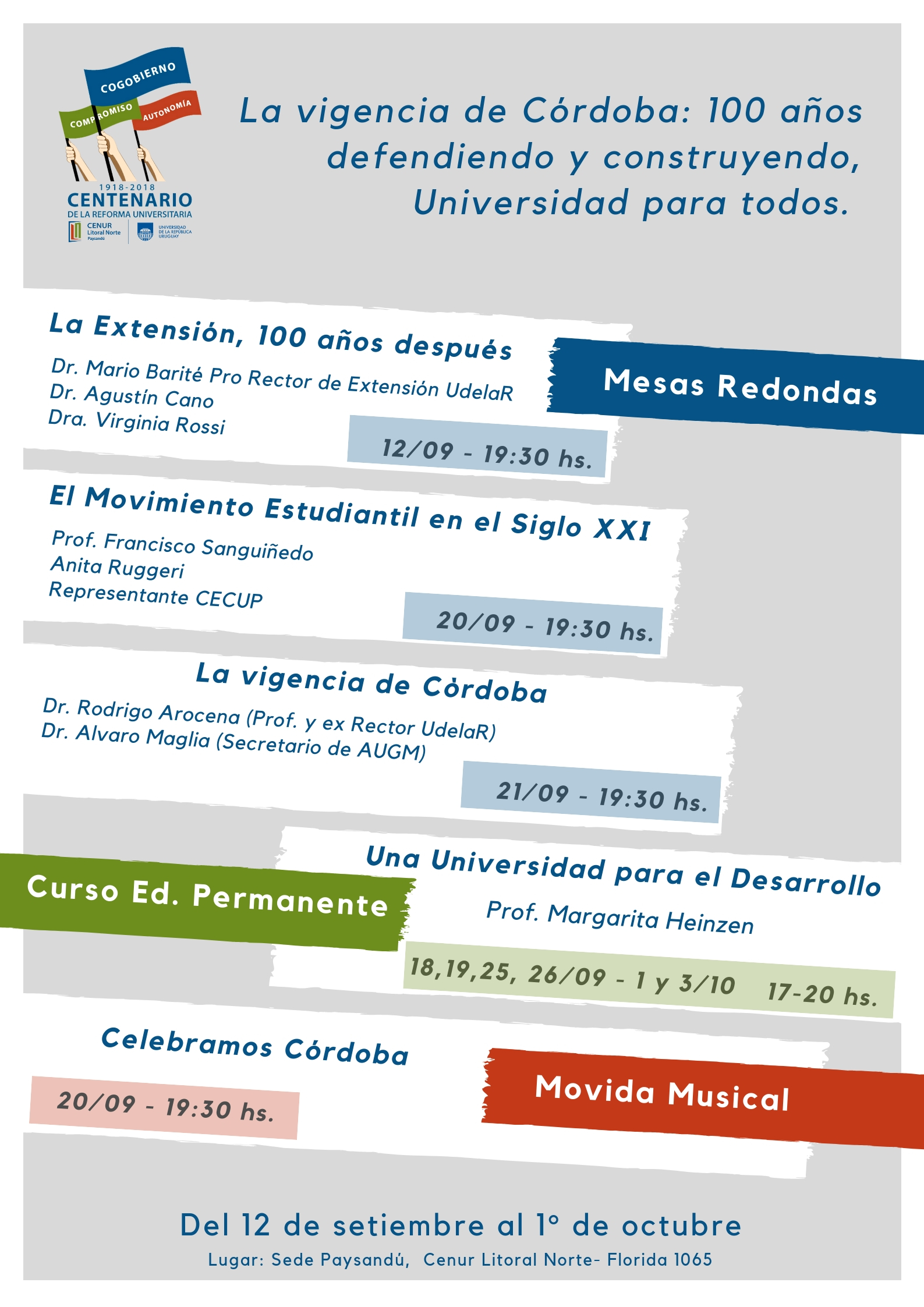 Compartimos las actividades a desarrollarse en la Sede Paysandú del Cenur Litoral Norte para la conmemoración.
