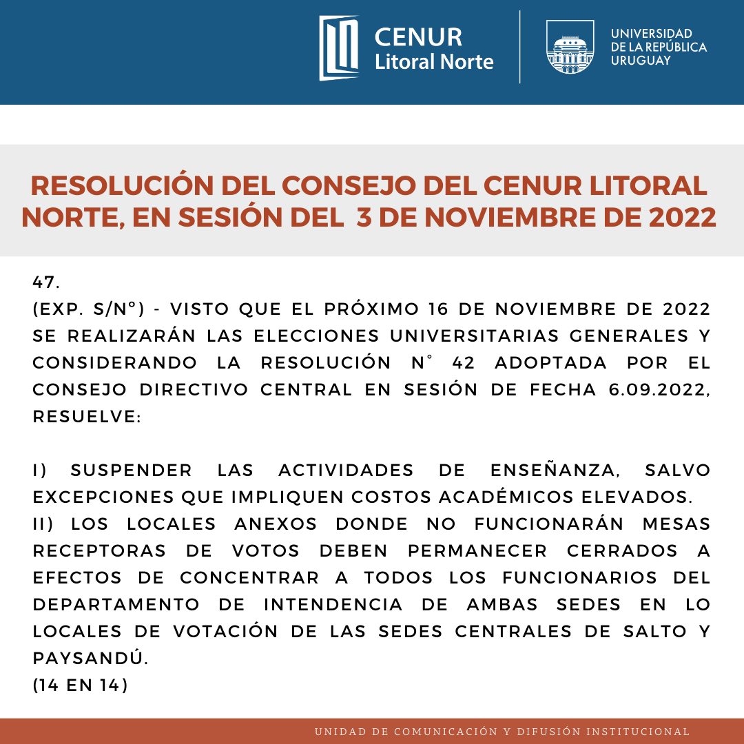 Resolución N° 47 adoptada por el Consejo del CENUR Litoral Norte, en sesión de fecha 3 de noviembre de 2022:
