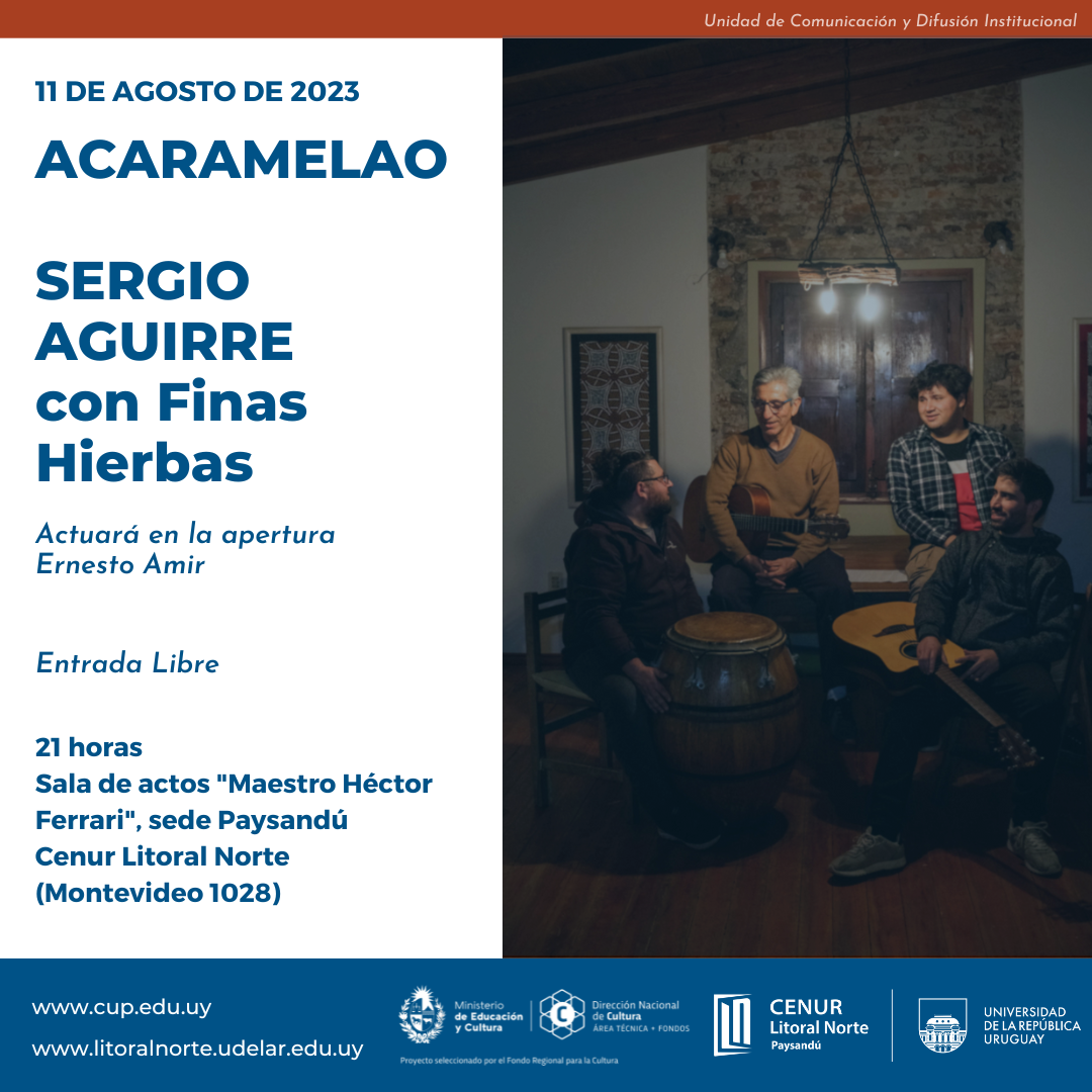 Gira Acaramelao, Sergio Aguirre con Finas Hierbas se presenta en la sede universitaria de Paysandú