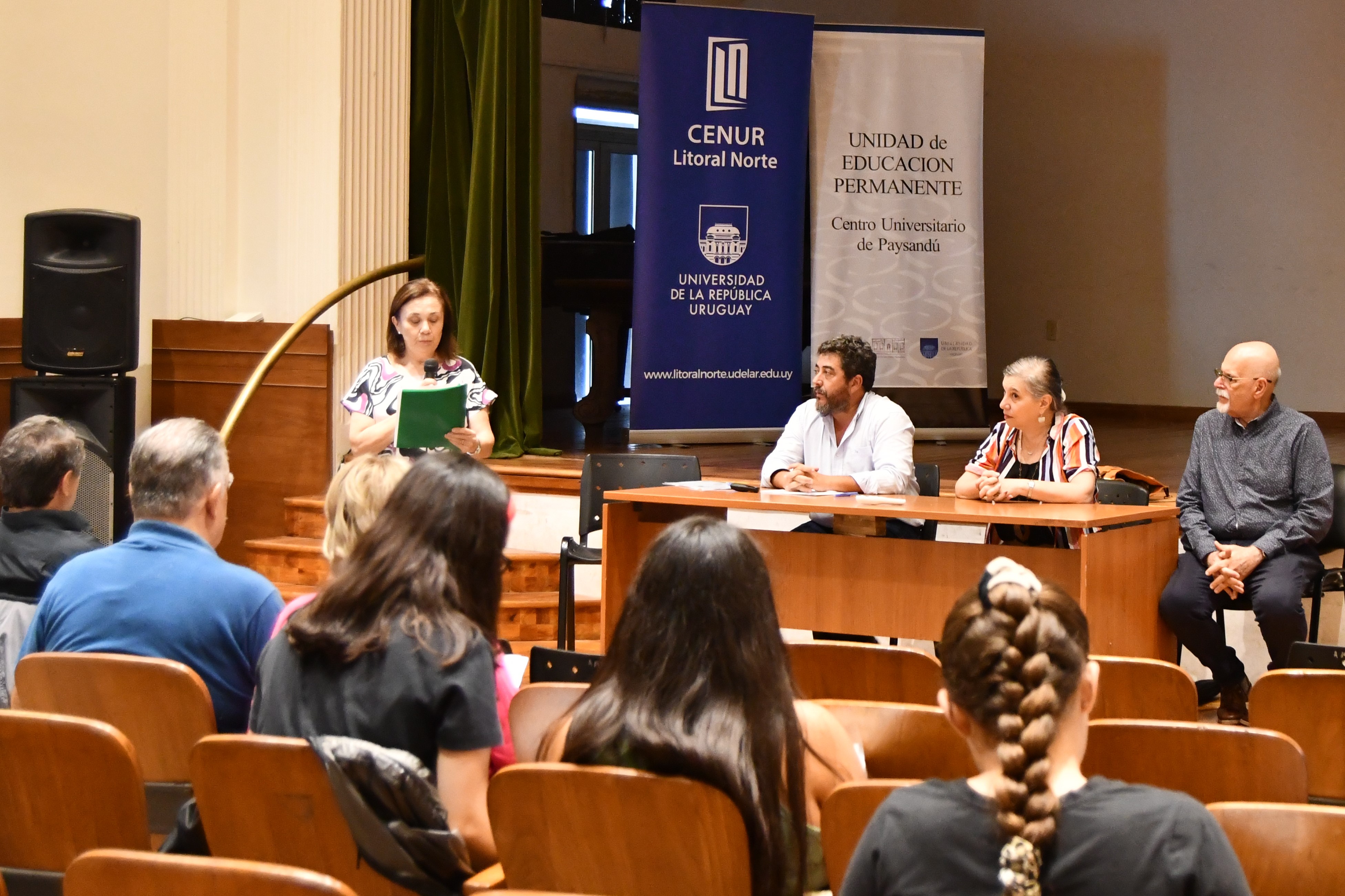 Acosta describió las particularidades de la sede universitaria anfitriona para este encuentro destacando el crecimiento exponencial de inscripciones que registra siendo en los últimos seis años la sede universitaria con mayor número de ingresos del interior. Recordó también el momento en el que conoció a Enrique Saforcada, en el año 2012 y relató anécdotas que dieron cuenta del convencimiento y el apoyo personal con el desarrollo de la vida universitaria en Paysandú a partir de su presencia concreta y el impulso a través de formaciones, proyectos y debates. “Tuvimos en Saforcada a un teórico y un profesor referente que además fue una persona muy cercana en el proceso de generar universidad en el interior del país”, dijo Acosta.